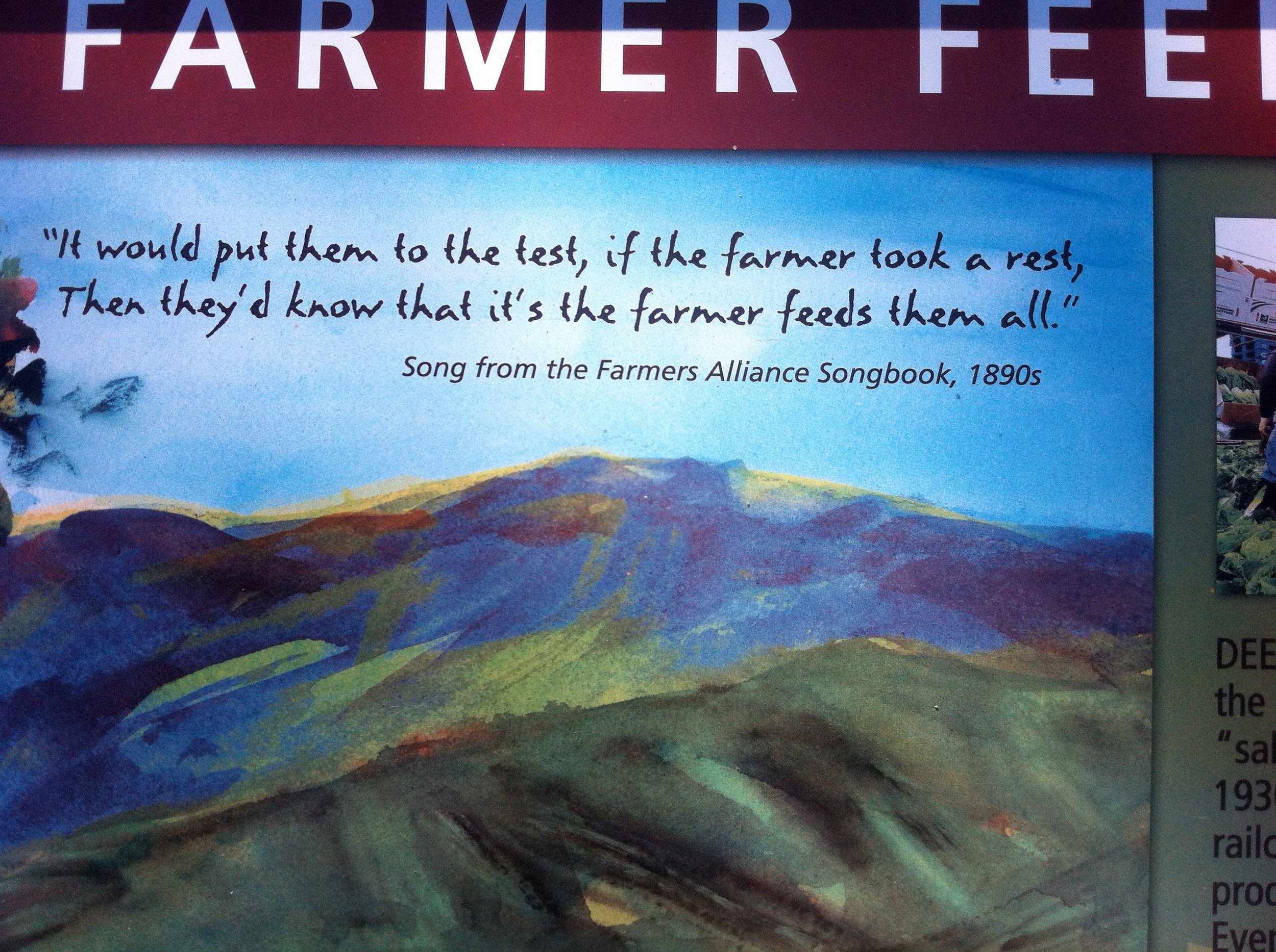 Ironically, the fact that farmers have been able to feed more people over time has allowed them to become a sort of obscure “other” group in our society that often ends up being inaccurately and unfairly demonized in our public discourse. In an earlier podcast titled “Big Little Lies”, and throughout my blogging “career,” I’ve tried to counteract the abundant disinformation about the real people who make up the small subset of our population still farming. It’s hard to know how much that negativity feeds into the lack of young people trying to enter farming or pursuing farming related careers, but farmers feeling themselves as under attack or misunderstood isn’t a new phenomenon. At a rest stop along California’s US-101 corridor in the still very agricultural Central Coast, there is a plaque that really struck me. It has a line from the “Farmers Alliance Songbook” from the 1890s that goes: “It would put them to the test, if the farmer took a rest, then they’d know that it’s the farmer feeds them all.” That was from a time when more than 40 percent of the population still farmed.